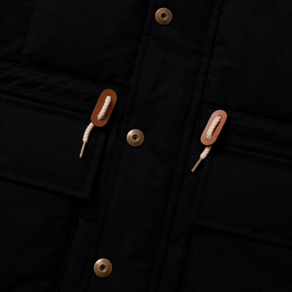 正方形のキルトパターンと腰ポケットのクラシカルな雰囲気を残しつつ、表地には東レの防水・透湿・暴風素材の「デルフィ」を採用。風雨を防ぎ、快適性を発揮。