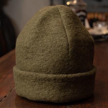 デザインは定番のワッフルニットキャップをベースに、伸縮性の少ない素材に合わせて横幅をやや広く設定。