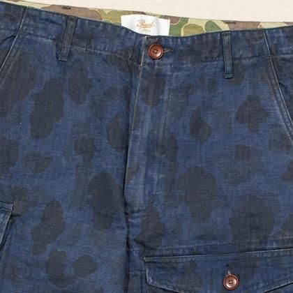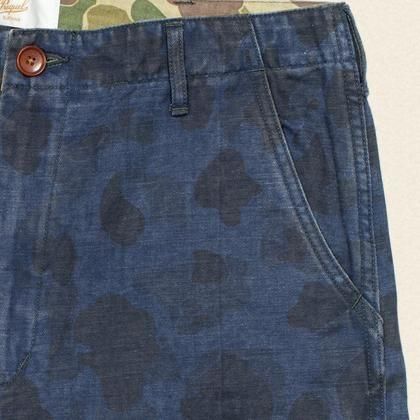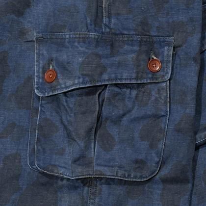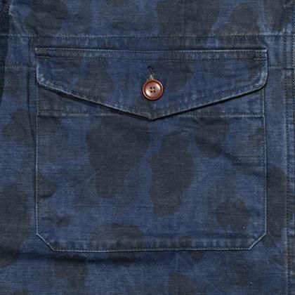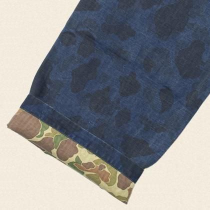 ダックハンターカモをインディゴ染めし、落ち着いた印象を与えている。