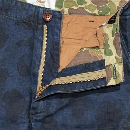 1940年代のアメリカ陸軍パラシュート部隊のポケットデザインと、イギリス陸軍のマップポケットデザインを組み合わせたユニークなパンツ。