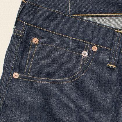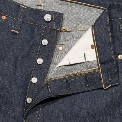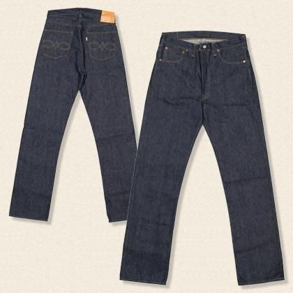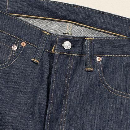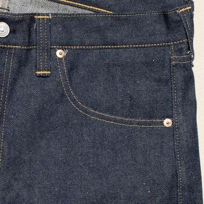 「デッドストック」という観点に、そのデニムを解析して糸番手から打ち込み本数まで新たに開発したデニムである。未使用のまま何十年も保管され、「酸化」した状態をイメージするため、全ての部材に経年変化を施している。赤いピスネームは褪色しフェードピンクに。鉄製のボタンはその重みが伝わるかのような鈍い光沢を残したままやや黄変している。鉄製で銅メッキされたリベットはそれぞれランダムな表情で穿たれ、革ラベルは当時の肉感と歪さを再現するため、アパレル製品では使用することの少ない「渋鞣し」のディアスキンを使用している。