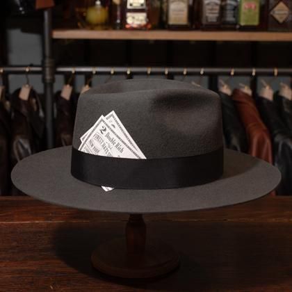 50’S アメリカンヴィンテージ ハットを彷彿させるティアドロップシェイプの黄金比を踏襲したデザインながら、ブリムの周囲にあしらうパイピングテープを付けないスッキリとした仕上げにすることで、同等のスペックの定番モデルのTWO DOLLERと差別化したモデル。
