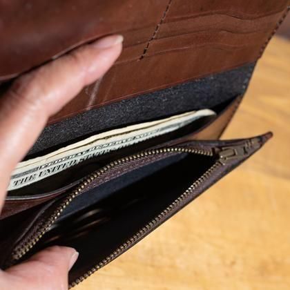 無骨な財布でも基本的な収納力を備え、必要な物を持ち歩ける。